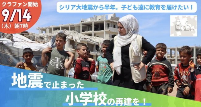 「シリアをまた行きたい国にする」を目標に活動し、シリア及びトルコで3000名以上の子どもたちに教育を届けてきたNPO法人Piece of Syria(代表 中野貴行、以下「Piece of Syria」)は、9月14日から750万円を目標にしたクラウドファンディングを開始しました。