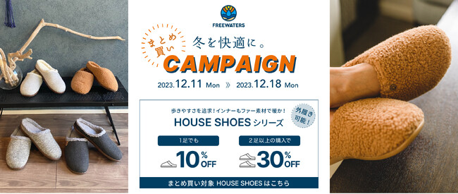 【最大30%OFF】Freewatersのハウスシューズも対象!1個でも10%OFF、まとめ買いの2個目が30%OFFになる期間限定キャンペーンを開催