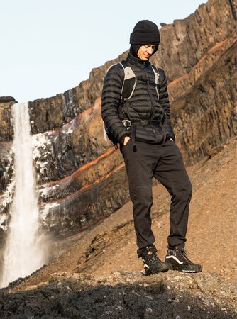 肌触りが良いストレッチ性抜群の生地で簡易的な撥水・防汚加工がされています。内側にはメリノウールブレンドの保温性が良い生地が搭載されていて、内側にも外側にも出す事が出来るシューレースドローコード、UPF+40で紫外線の影響を軽減コーティング、10ポケットデザインで収納力も高く、スキミング防止のRFIDポケットも装備されテクニカルなアイテムです。