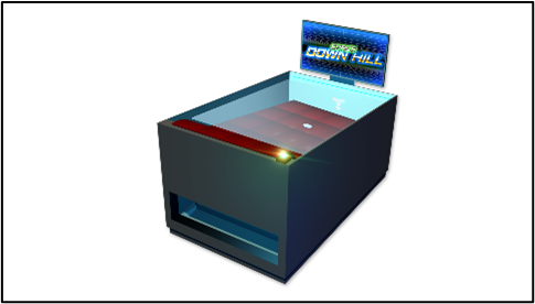 エアホッケーのようにゴールゲートをめがけて、左右に揺れている板の上を、丸いパックを滑らせるゲームです。坂には「TFコート」を塗布した摩擦が起きにくい滑りやすい面と、塗布していない面がランダムにあり、パックの滑り方が均一ではありません。時間内にどれだけのパックをゴールゲートに入れられるかを競います。