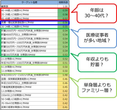 Step1. 顧客の居住エリアと相関が高い統計データの抽出