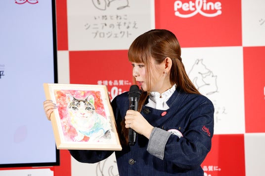 イベント終盤には、「わん暦・にゃん暦 祝い 投稿キャンペーン」でもらえる世界に一点だけの愛犬・愛猫の「わん暦・にゃん暦 祝い」アートを2人に贈呈。中川さんは、贈呈された愛猫のオリジナルイラストに大喜び。愛猫のらいちゃんのイラストを見ると「一緒にツーショットを撮りたい!」と大興奮。寺田さんは自身の愛犬のイラストについて、「そっくり!めちゃくちゃ可愛いです。」と、オリジナルイラストを眺めていました。