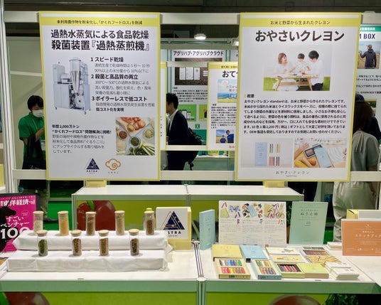 「おやさいクレヨン(R)」の原料は、従来は食材をフリーズドライで粉末に加工していましたが、フリーズドライは乾燥費用が高く、コストの面で課題がありました。一方、ASTRA FOOD PLANが独自開発した『過熱蒸煎機』は、低コストかつ生産効率が高い乾燥技術であるため、フリーズドライのパウダーよりも価格を抑えることができます。