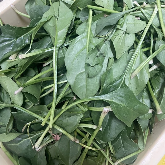 これまでは廃棄されていた、出荷用のほうれん草を束ねる作業で取り除かれた、外側の葉が使用されています。富士見市の生産者、永瀬伸也さんが生産したほうれんそうです。