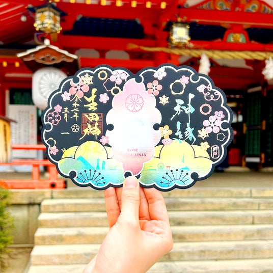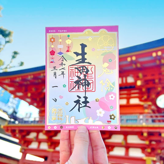 3月限定御朱印【やよい】この御朱印は、ひな祭り(桃の節句)になじみ深い「つるし雛」や「桃の花」、また『古事記』『日本書紀』等には魔(厄災)を祓ったと記される「桃の実」を神戸の街に配し、調製したものです。