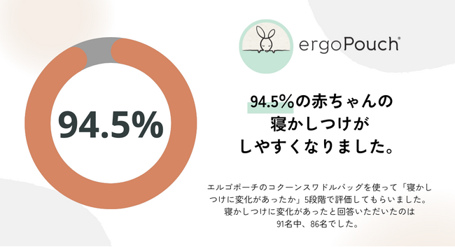 エルゴポーチのスワドルを使用し、94.5%の方がお子さまの「寝かしつけがしやすくなった」と回答。