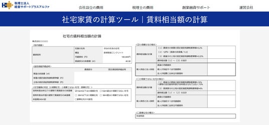 「社宅家賃の計算ツール|賃料相当額の計算」ツール:https://keiei-support-plus-a.com/zeirishi-hiyou/yakuin-shataku-yachin-keisann/