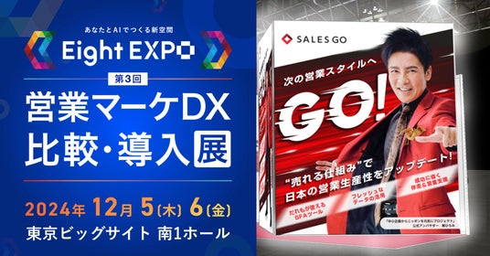 SFAとインサイドセールスで営業のデジタル化と売上アップを支援するSALES GO株式会社(所在地:東京都品川区、代表取締役社長:内山 雄輝、以下SALES GO)は、2024年12月5日(木)、6日(金)に東京ビッグサイトで開催される「Eight EXPO」に出展いたします。