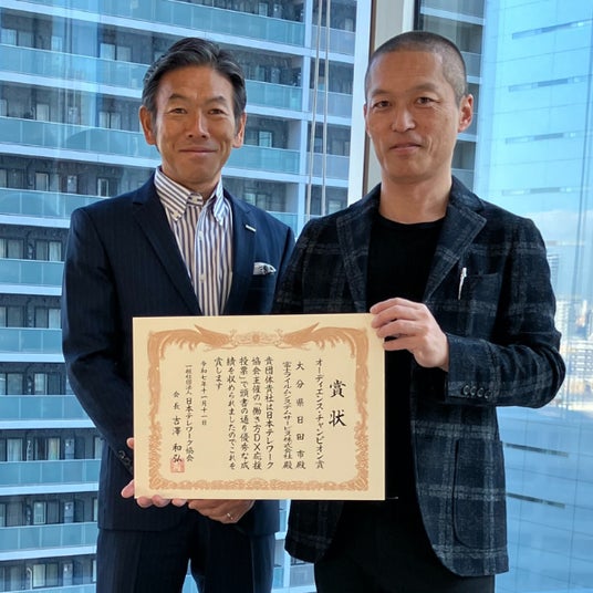 オーディエンス・チャンピオン賞 大分県日田市 税務課 大神主任と富士フイルムシステムサービス 新規事業創造推進 佐伯マネージャーがジョイントでご発表。