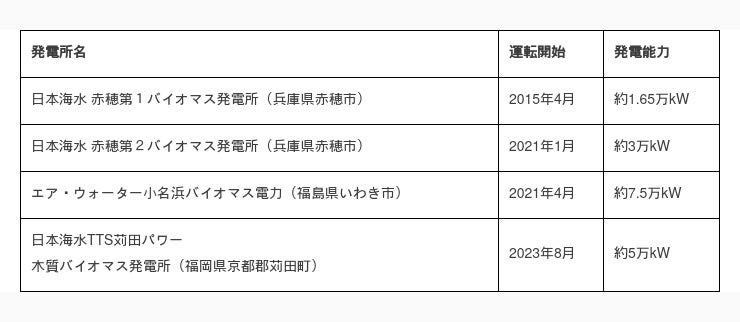 また、当社グループが運営する大規模な木質バイオマス発電所は計4箇所、最大発電出力は計17.15万kWとなります。当社グループは再生可能エネルギーによる電力事業を通じて、脱炭素社会の実現に貢献していきます。