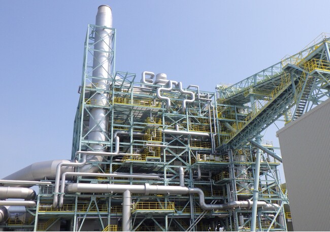 本発電所の発電形式は、5万kW規模のバイオマス発電ボイラであり、PKS(パームヤシの殻、パーム油を生産する過程で発生する農作物残渣)や国内材(建設廃材や樹皮など)を燃焼しやすいトラベリングストーカ方式を採用し、燃料の多様性に対応可能なものとしています。