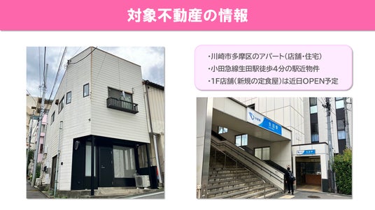 らくたま15号(平塚市明石町1.)を10月下旬より募集開始いたします。優先出資総額は約1億1000万円を予定しています。ファンド概要詳細は後日公表するリリースをご参照ください。