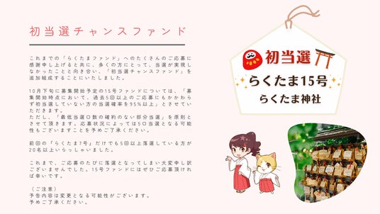 今回、『らくたま』では初となる「初当選チャンスファンド」で、新しいチャレンジをしたいと思います。