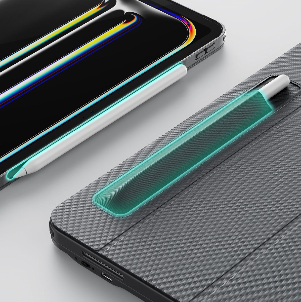 iPad 10/iPad 11(A16)及び、iPad Air 4~5/iPad Air 11&13インチ(M2/M3)の人気iPadシリーズに対応している「ESR Shift キーボードケース(脱着式)」は、強力なマグネットクリップを採用し、ケース本体とキーボードの着脱をスムーズに行える設計のキーボードケースです。直感的な操作が魅力の大画面タッチスクリーンにキーボードを組み合わせることで、ノートパソコンに劣らない長時間の快適なタイピングを実現。さらに、大型トラックパッドを活かしたマルチタッチジェスチャーにより、iPadの操作性と利便性を飛躍的に向上させます。