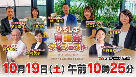 第2回はテレビ新広島で10/19(土)午前10時25分から放送。アーカイブは広島県県議会ホームページよりご覧ください。