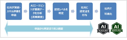BlackBelt :AI導入コンサルタント、AIプランナーとしてAIを活用した業務変革のけん引が実現されているかを実践レベル判定により適切に評価・認定、相互に成果・ノウハウを共有し高め合う仕組みを構築する。