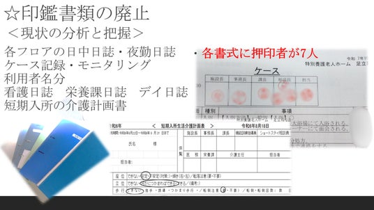 足立翔裕園は開設29年目を迎えるが、依然として紙書類と押印作業が多く、印刷・押印者の確認・物理的な書類管理といったアナログ作業に時間がかかることが大きな課題となっていた。さらに、外国籍職員が20名在籍しているものの、議事録作成の負担が日本人職員に偏り、特定の職員の負担が増大していた。こうした背景を踏まえ、「業務のムダを洗い出し、働き方を変える必要がある」と考え、研究がスタートした。