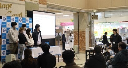 域学共創プロジェクトの報告会を2月3日、東金ショッピングセンター サンピア(千葉県東金市) 1階ステージコートで開催しました。9グループ約70名の学生たちはグループワークやフィールドワーク、インタビュー、イベント参加などを通して得た経験をもとに、1年間の活動報告を行いました。