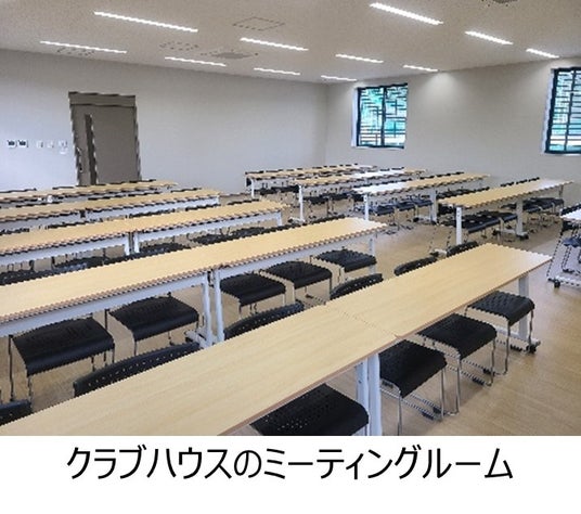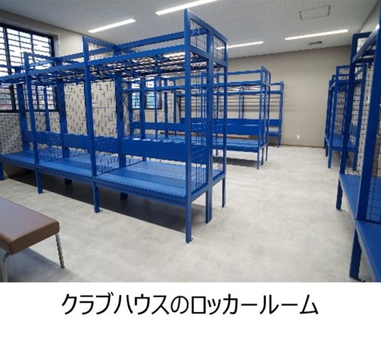 クラブハウスには、約65名が同時に使用できるロッカールーム2室、シャワールーム4室、簡易キッチンなど充実した設備が整っています。162.48平方メートル (約100畳)のトレーニングルームは、多彩なトレーニング器具を揃えており、選手の体力強化を支えます。ミーティングルームには戦術ミーティングやオンライン授業に対応可能なインターネット・Wi-Fi環境を整えました。いずれもグラウンドを見渡せる設計となっており、利便性と一体感を高めています。