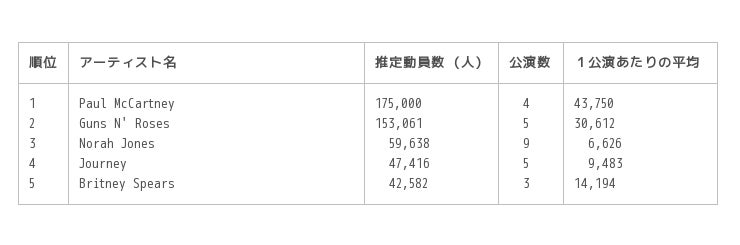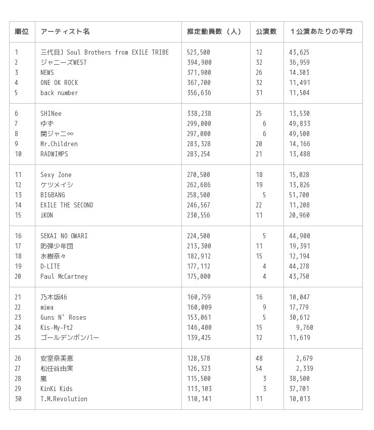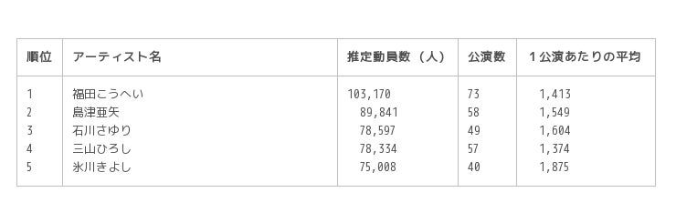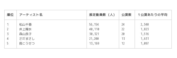 複数のアーティストが出演するイベントやフェスは集計対象外としています。