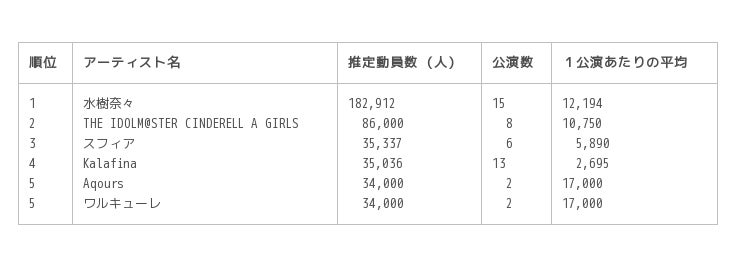 今回調査したライブ動員数を元に算出した推定値となり、実際の数値とは異なる場合があります。