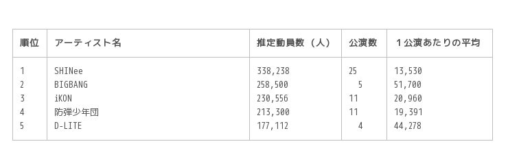 ライブ動員シェア(占有率)は、上位200組の集計結果です。