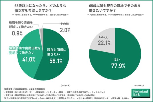 シニア世代は65歳以降も「現在と同様に働きたい」が最多。約8割が現在の職場での継続就労を希望