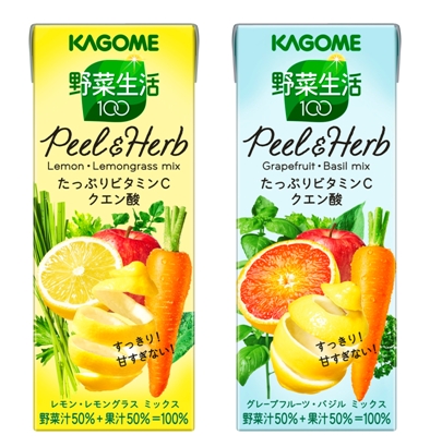 カゴメの『野菜生活100』は、昨年で発売から20周年を迎え、ロングセラーブランドとして親しまれてきました。同ブランドから3月1日(火)より発売を開始した「野菜生活100 Peel&Herb」は、柑橘のピール(皮)とハーブの組み合わせで、気分転換やリフレッシュに最適な新しい野菜・果実ミックスジュースです。