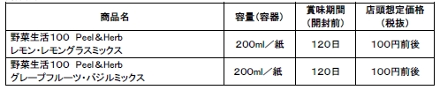 スーパーマーケットなどで発売を開始した新商品「野菜生活100 Peel&Herb」2品の当社からの出荷実績が