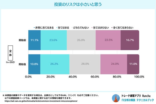 テクニカル分析専門サイト『テクニカルブック』は、投資未経験者によくある勘違いを調査する目的で、株式/投資信託/FXに取り組んでいる20歳以上の男女596名を対象にアンケートを行いました。本調査からは、必要となる資金量をはじめとして、取引開始前後における投資に対するさまざまな印象の変化が見えてきました。