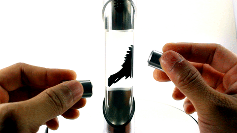 そこに科学的な根拠は存在しません。しかし「FORCE FLUID」内で変幻自在に動く磁性流体を目にすればあなたは必ずそれを実感するはずです。美しいものを見ることは確かに癒しにつながりますが、この「FORCE FLUID」の生み出す美しさはただの感覚とは違うように感じます。ただ触って眺めるだけことに熱中してしまう感覚は、近年流行したハンドスピナーに近い中毒性があります。