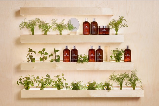 ロンドンのサウスモルトン・ストリートで創業した「モルトンブラウン」の創業当時(70年代)に撮影されたサロンの未公開写真をはじめ、「モルトンブラウン」の製品に欠かせないハーブをロンドンの地下トンネルで栽培する様子など、ものづくりの裏側を知ることができるイメージ展示で、創業当時からケミカル成分を使わない「モルトンブラウン」のこだわりを体感いただけます。