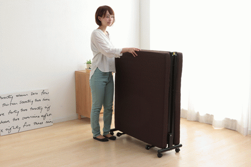 6つのキャスターがついているので、折り畳んだままの移動が楽にできます。お掃除も模様替えも楽々です。