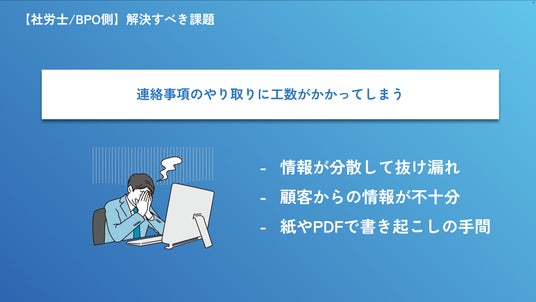社労士/BPO側メリット:紙・PDF 連絡票の転記をなくし、デジタル化を実現