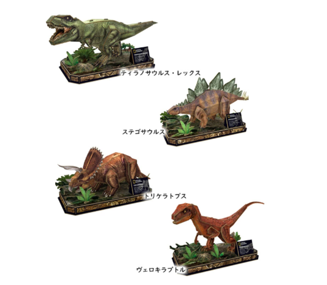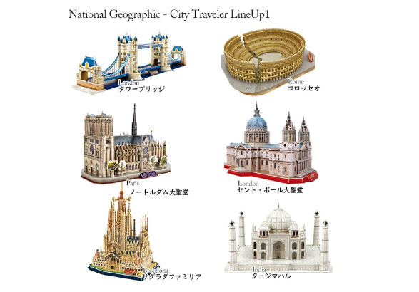 今にも動き出しそうな【ダイナソーシリーズ】やナショナルジオグラフィックと提携して3Dパズルとフォトグラフ冊子を合わせた【シティトラベラーシリーズ】など年齢問わずに楽しめるのがCubicFunの魅力です。