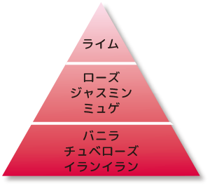 当社の香りは、代表の井上により考案され、‶メモリー(Memory)″と名付けました。トップノートはライム、そしてミドルノートにローズ・ジャスミン・ミュゲが香る、クラシカルな気品漂うオリエンタルフローラルノートの香りです。ベースにはバニラ・チュベローズ・イランイラン・サンダルウッドが使われており、濃厚で優雅さをも感じられます。当社の受付や会議室などで放香してまいります。