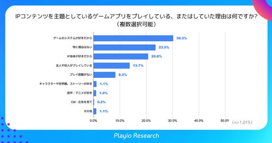 ※Playioリサーチ設問/「IPコンテンツを主題としているゲームアプリをプレイしている、またはしていた理由は何ですか?(複数選択可能)」