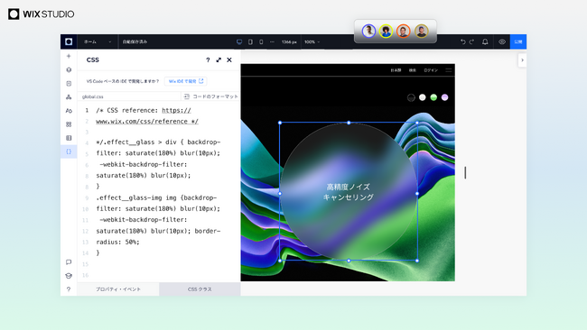 カスタム CSS:Wix Studio のエディタで、CSS を簡単にカスタマイズできます。CSS をコピーしてエディタに貼り付け、各パーツに適用することで、新しいデザインやアニメーション、インタラクションの作成が可能です。