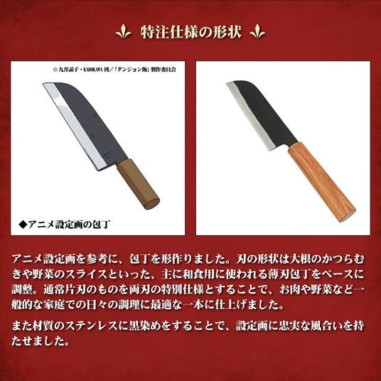 『ダンジョン飯』の登場人物、センシが作中で使用している包丁を、新潟県三条市で70年以上の歴史を持つ鍛冶屋『庖丁工房タダフサ』が再現!