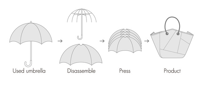 現代社会で大量に廃棄されるビニール傘は年間約8,000万本が廃棄されていると言われています。分解のしにくさからリサイクルが難しく、多くが埋め立て、焼却処分されています。