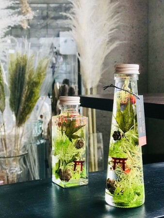 下鴨神社すぐ「花のアトリエ-ylang ylang(イランイラン)-」でお花に囲まれながら、京都風のハーバリウムづくりができるプランです。京都旅の思い出を小瓶に詰めてみませんか。体験後には可愛くて美味しい「わらび餅ラテ」でほっこりしてください。日々の喧騒から離れたゆっくりとした時間をお楽しみいただけます。