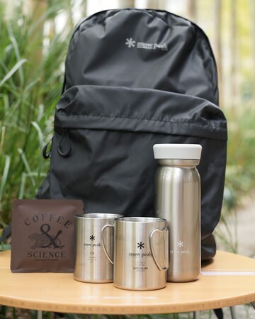 【商品内容】スノーピーク製のデイパック+ボトル(コーヒー入り)+マグを貸し出し