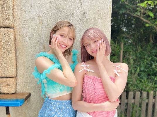 お互いの可愛いトレンドネイルが気になってしまい、撮影に集中できない二人。