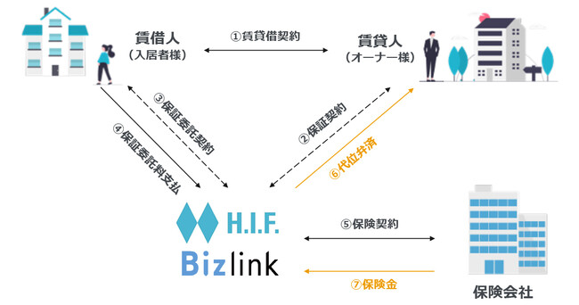上記の課題を解決すべく、この度ビズリンクからH.I.F.にお声がけいただき、業務提携を行うこととなりました。AI定性与信を活用した家賃保証サービスの提供により「Bizlink」登録者の賃貸契約をサポートします。