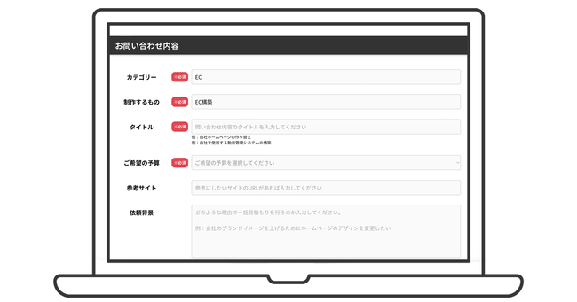 フォームでは予算や開発内容を細かく記載できるため、こんなはずじゃなかった、、をふせぐことができます。