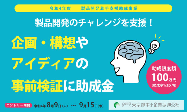 公益財団法人 東京都中小企業振興公社(本社:東京都千代田区、理事長:目黒 克昭)は、新たな製品・技術開発を促進することを目的として、都内の中小事業者等を対象に「製品開発着手支援助成事業」の申請エントリーを9月15日(木)17時まで受け付けます。