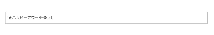 内容:平日の14:00~18:00の間にご来店、フードメニューと一緒に生ビール、ハイボール、レモンサワーの