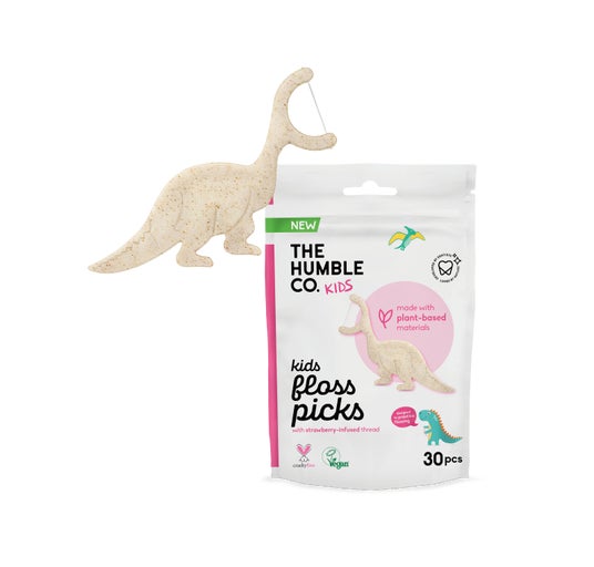 30本入り 715円(税込)デンタルフロスピック(キッズ)歯科医の指導・監督のもと製造された、スウェーデン生まれのデンタルフロスピック。フロスピックのハンドルは、植物由来素材とポリプロピレンのミックス素材を使用。石油由来原料の使用量 を50%削減しています。フロスの糸は、滑らかで丈夫、破れにくいポリエチレン製で、エッジは丸みを帯びています。恐竜のかたちのハンドルといちごフレーバーは、子どもが楽しくフロス使用を習慣づけられるように設計されています。洗って繰り返し使えます。