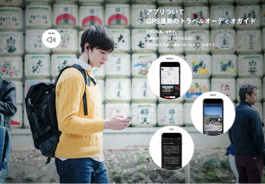 一つ一つのガイドはまるで映画や小説のような心動かす作品。ガイドを聴くことで旅先の理解が深まり、旅の体験がふくらみます。訪日観光客も利用できるよう、 日本語のほか、英語、中国語などにも対応しています。