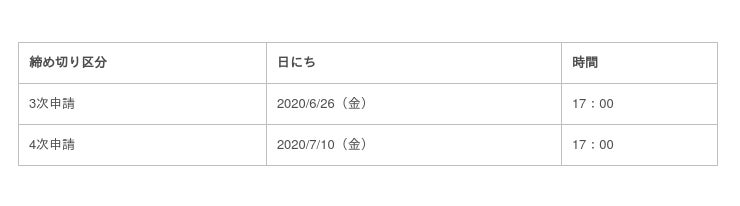 ※交付申請期間は【2020年12月下旬】までを予定されています。以後の締め切りは随時発表見込みです。